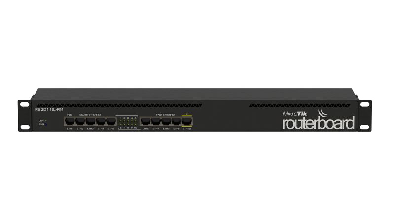 RouterBOARD 2011iL-RM comes with 1U rackmount enclosure and power supply.